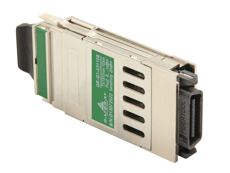 GR-G1-X3110S - dual-fiber optical GBIC (Gigabit Interface Converter) module, with data transfer rate up to 1,25 Gbps over a distance up to 10 km via two single mode optical fibers, Tx working wavelength of 1310 nm, 2 SC sockets.