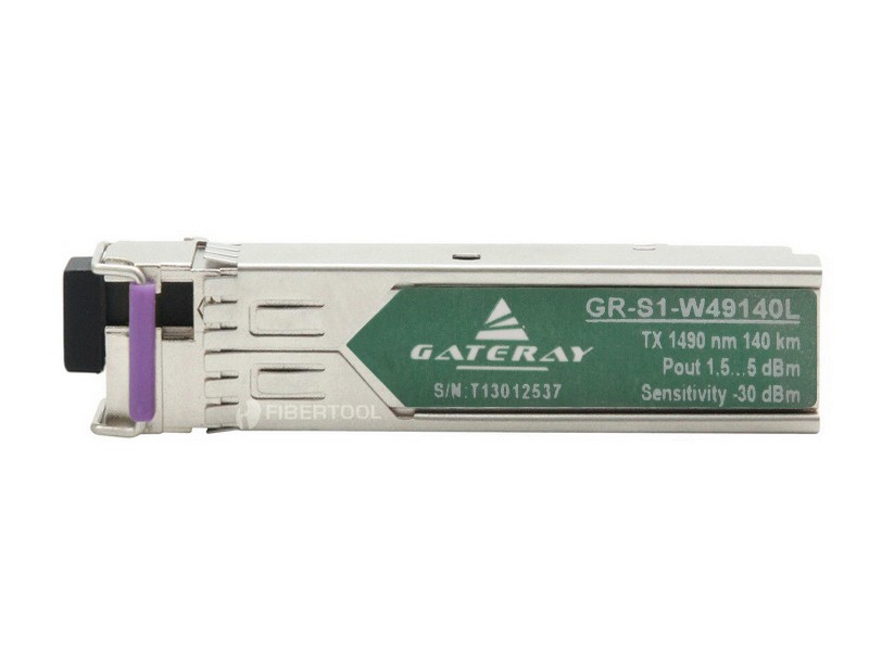 GR-S1-W49140L - single-fiber optical SFP module (Small Form-factor Pluggable), with data transfer rate up to 1,25 Gbps over a distance up to 140 km, working wavelength: Tx 1490 nm / Rx 1550 nm, LC socket.