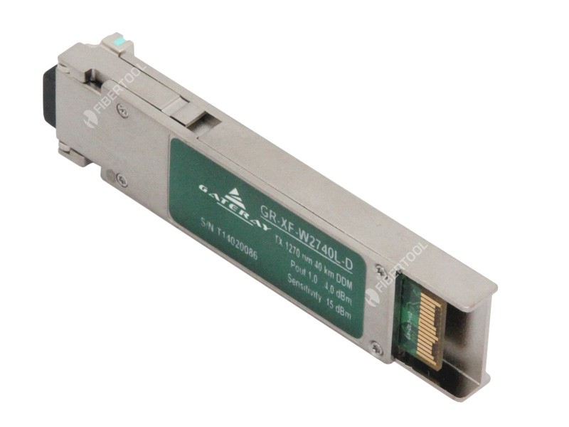 GR-XF-W2740L-D - single-fiber optical XFP module (10 Gigabit Small Form Factor Pluggable), with data transfer rate up to 10 Gbps over a distance up to 40 km, working wavelength: Tx 1270 nm / Rx 1330 nm, LC socket, Digital Diagnostics Monitoring (DDM).