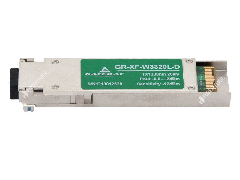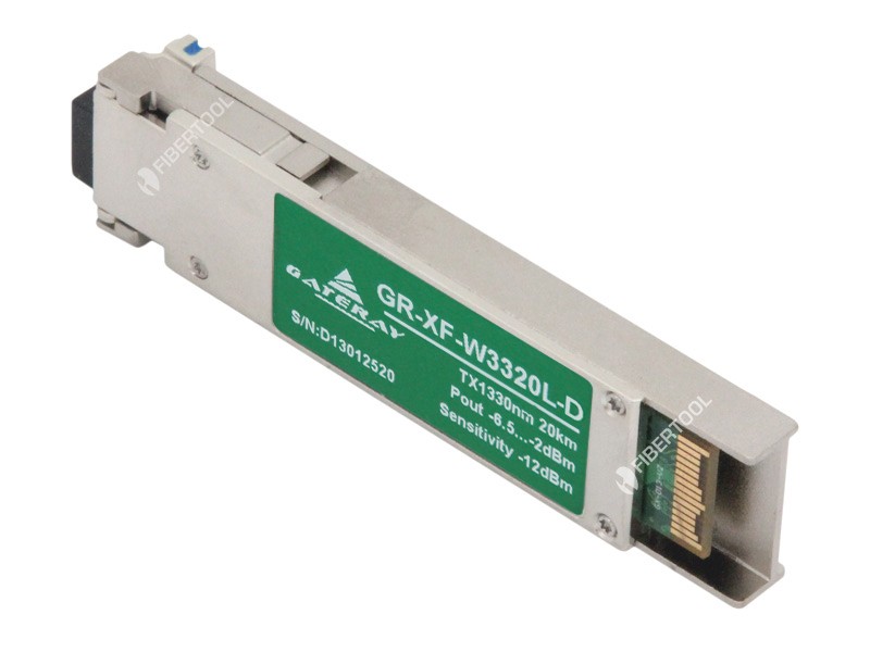 GR-XF-W3320L-D - single-fiber optical XFP module (10 Gigabit Small Form Factor Pluggable), with data transfer rate up to 10 Gbps over a distance up to 20 km, working wavelength: Tx 1330 nm / Rx 1270 nm, LC socket, Digital Diagnostics Monitoring (DDM).
