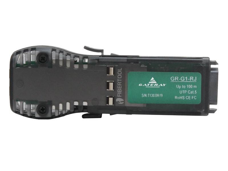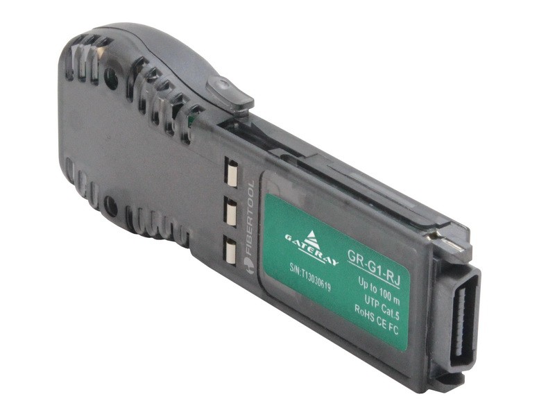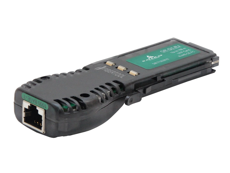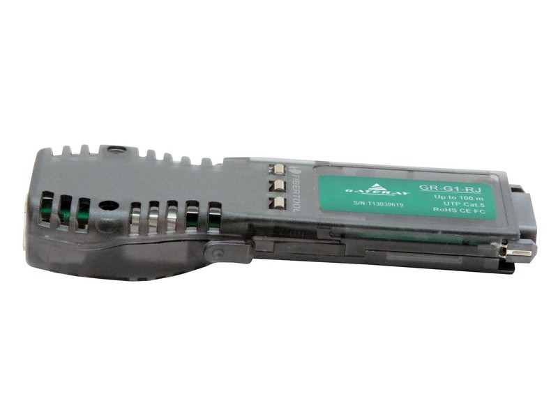 GR-G1-RJ GBIC (Gigabit Interface Converter) module, with data transfer rate up to 1,25 Gbps over a distance up to 100 meters via twisted pair cable (UTP) category 5, RJ-45 socket.