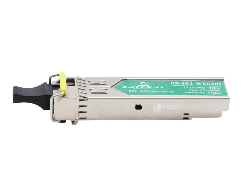 GR-S01-W5520L - is a single-fiber optical SFP module (Small Form-factor Pluggable), with data transfer rate up to 155 Mbps over a distance up to 20 km, working wavelength: Tx 1550 nm / Rx 1310 nm., LC socket.