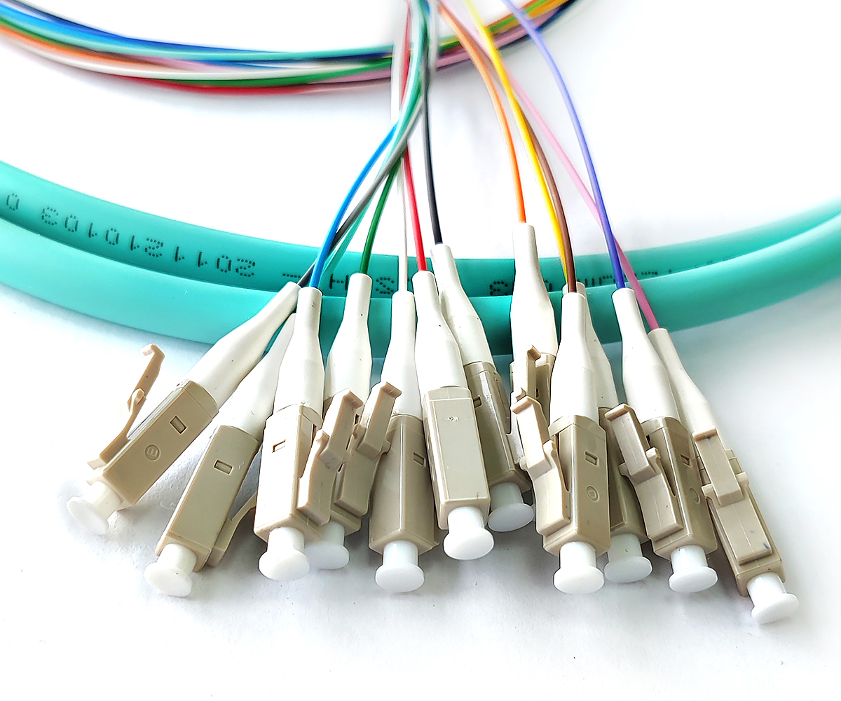 12 Fibers LC/UPC OM3 Multimode Bunch Fiber Optic Pigtail, LSZH Outer Jacket