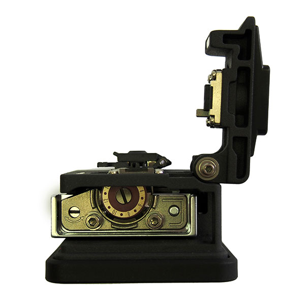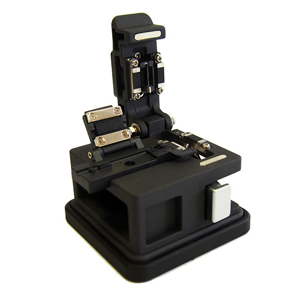 The cleaver does not have an automatic trash bin, only a container. You cannot attach an automatic shard collector. Fragments are removed manually by an operator. The height of the blade is adjusted by a Fiber cleaver cam. The rotation of the blade to a new position and the height adjustment are separated, which makes it easier to set up the tool. While the cleaver blade is unique, an undeniable advantage is that the rubber clips are standard for easy replacement.