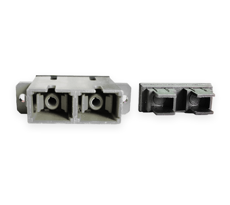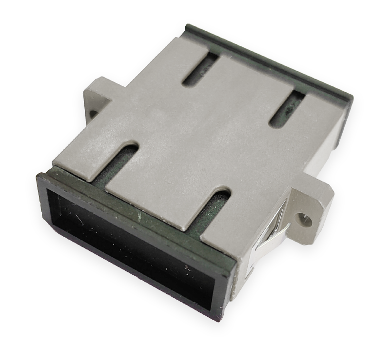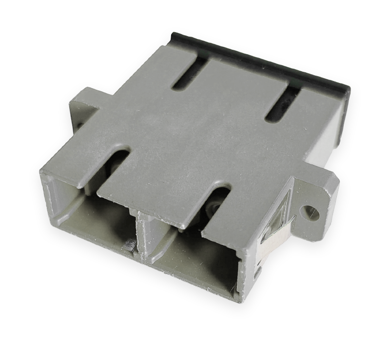 SC to SC Duplex Multimode Adapter with Flange, UPC is intended for connecting patch cords with SC/UPC connectors. The adapter has dust caps that protect the ceramic sleeve from dirt and dust.