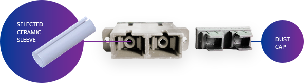 High-precision ceramic sleeves used to achieve highest precision alignment of the connectors. That ensure stable mechanical and optical connection.