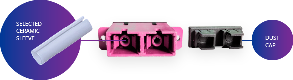 High-precision ceramic sleeves used to achieve highest precision alignment of the connectors. That ensure stable mechanical and optical connection.