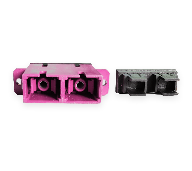 SC to SC Duplex Multimode Adapter with Flange, UPC is intended for connecting patch cords with SC/UPC connectors. The adapter has dust caps that protect the ceramic sleeve from dirt and dust.