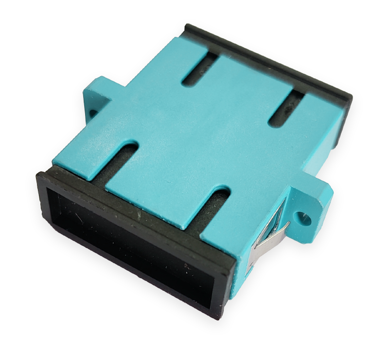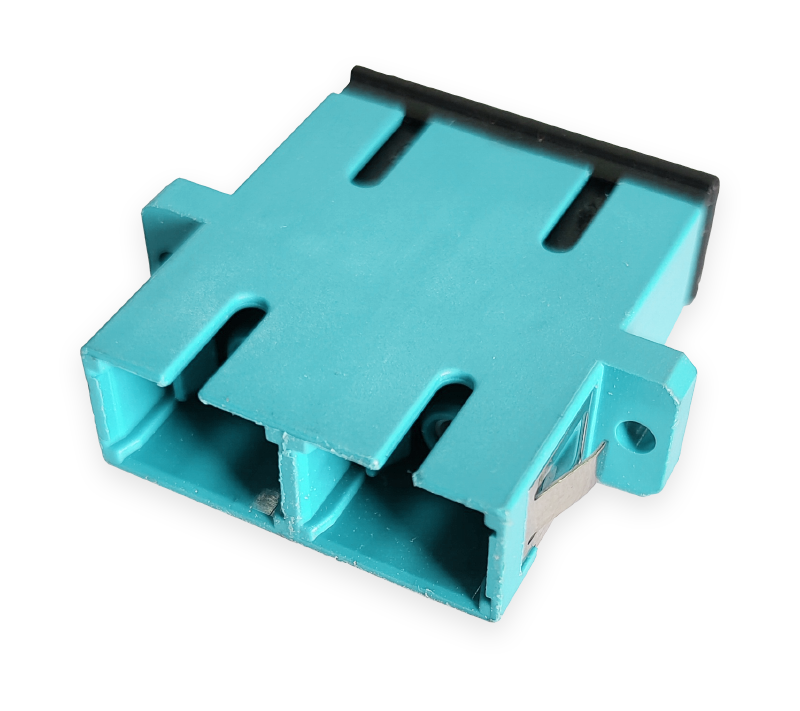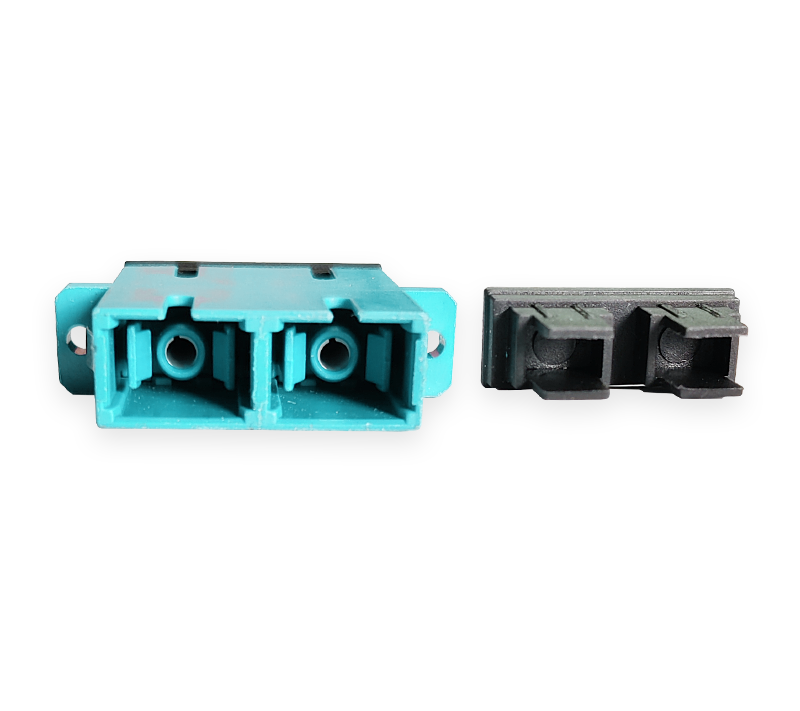 SC to SC Duplex Multimode Adapter with Flange, UPC is intended for connecting patch cords with SC/UPC connectors. The adapter has dust caps that protect the ceramic sleeve from dirt and dust.