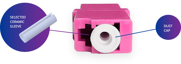 High-precision ceramic sleeves used to achieve highest precision alignment of the connectors. That ensure stable mechanical and optical connection.