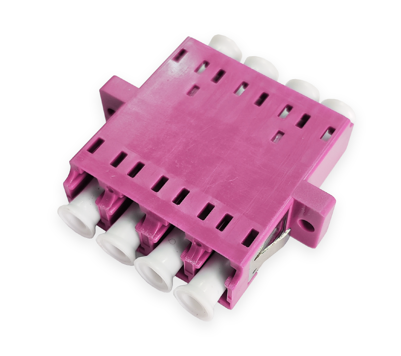 The LC to LC Quad Multimode Adapet UPC is intended for connecting patch cords with LC/UPC connectors. The adapter has dust caps that protect the ceramic sleeve from dirt and dust.