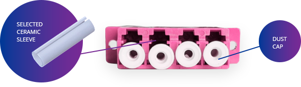 High-precision ceramic sleeves used to achieve highest precision alignment of the connectors. That ensure stable mechanical and optical connection.