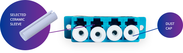 High-precision ceramic sleeves used to achieve highest precision alignment of the connectors. That ensure stable mechanical and optical connection.