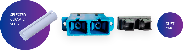 High-precision ceramic sleeves used to achieve highest precision alignment of the connectors. That ensure stable mechanical and optical connection.