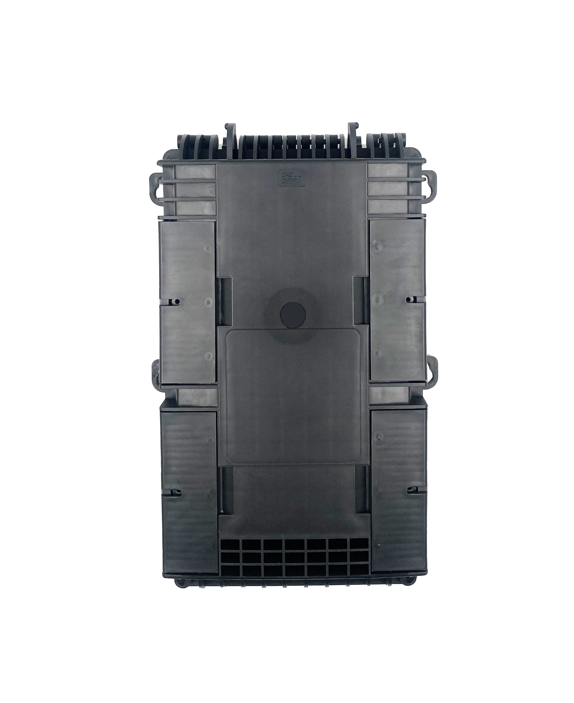 It is made of plastic and has a dust-splash-proof dead-end design (optical cable input and output of drop cables are made on one side).